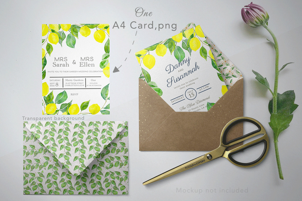 This Juicy Lemon collection is perfect for a variety of creative projects like card making, print on t-shirts and cups, for decor interiors, digital stickers, birthday and wedding invitations, cooking recipes and menus, labels, digital papers and other DIY’s.